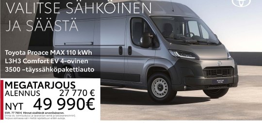 Toyota Proace MAX 110 kWh L3H3 Comfort EV 4-ovinen 3500 –täyssähköpakettiauto