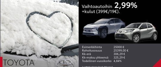 Hinta sisältää Toyota Easy Osamaksu -rahoituksen ja Toyota Huoltosopimuksen